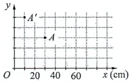 Một thấu kính mỏng được đặt sao cho trục chính trùng với trục của hệ trục tọa độ vuông góc . Điểm sáng đặt gần trục chính, trước thấu kính. là ảnh của qua thấu kính (hình bên). Tiêu cự của thấu kính là?