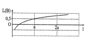 (QG 17): Hình bên là đồ thị biểu diễn sự phụ thuộc của mức cường độ âm L theo cường độ âm I. Cường độ âm chuẩn gần nhất với giá trị nào sau đây?