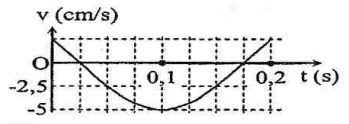 Hình bên là đồ thị biểu diễn sự phụ thuộc của vận tốc theo thời gian của một vật dao động điều hòa. Phương trình dao động của vật là