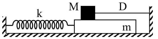 Cho cơ hệ như hình bên. Vật khối lượng có thể chuyển động tịnh tiến, không ma sát trên mặt phẳng nằm ngang dọc theo trục lò xo có . Vật khối lượng có thể trượt trên với hệ số ma sát . Ban đầu, giữ đứng yên ở vị trí lò xo dãn , dây (mềm, nhẹ, không dãn) song song với trục lò xo. Biết luôn ở trên m và mặt tiếp xúc giữa hai vật nằm ngang. Lấy . Thả nhẹ cho chuyển động. Tính từ lúc thả đến khi lò xo trở về trạng thái có chiều dài tự nhiên lần thứ 3 thì tốc độ trung bình của là?