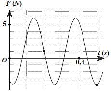 Một con lắc lò xo được treo vào một điểm cố định đang dao động điều hòa theo phương thẳng đứng. Hình bên là đồ thị biểu diễn sự phụ thuộc của lực đàn hồi mà lò xo tác dụng lên vật nhỏ của con lắc theo thời gian . Tại lực kéo về tác dụng lên vật có độ lớn là