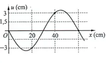 Một sóng cơ hình sin truyền trên một sợi dây đàn hồi dọc theo trục Ox. Hình bên là hình dạng của một đoạn dây tại một thời điểm. Biên độ của sóng có giá trị gần nhất với giá trị nào sau đây?