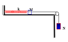 Cho hệ vật gồm lò xo nhẹ có độ cứng , vật có khối lượng được nối với vật có khối lượng bằng một sợi dây không dãn vắt qua ròng rọc như hình bên. Bỏ qua mọi ma sát, bỏ qua khối lượng dây và ròng rọc. Ban đầu giữ tại vị trí để lò xo không biến dạng, ở xa mặt đất. Thả nhẹ để cả hai vật cùng chuyển động, sau thì dây bị đứt. Sau khi dây đứt, dao động điều hòa trên mặt phẳng nằm ngang với biên độ . Lấy . Giá trị của bằng