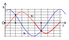 Hai vật và dao động điều hòa cùng tần số. Hình bên là đồ thị biểu diễn sự phụ thuộc của li độ của và li độ của theo thời gian . Hai dao động của và lệch pha nhau?