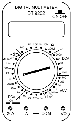 Các thao tác cơ bản khi sử dụng đồng hồ đa năng hiện số (hình vẽ) để đo điện áp xoay chiều cỡ gồm:
