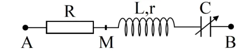 Đặt điện áp xoay chiều ( và có giá trị dương, không đổi) vào hai đầu đoạn mạch như hình bên, trong đó tụ điện có điện dung thay đổi được. Biết , cảm kháng của cuộn dây và . Khi và khi thì điện áp giữa hai đầu có biểu thức tương ứng là và ( và có giá trị dương). Giá trị của là