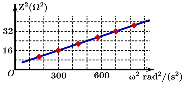 Trong giờ thực hành đo độ tự cảm của một cuộn dây, học sinh mắc nối tiếp cuộn dây đó với một điện trở thành một đoạn mạch. Đặt điện áp xoay chiều có tần số góc thay đổi được vào hai đầu đoạn mạch rồi đo tổng trở của đoạn mạch. Hình bên là đồ thị biểu diễn sự phụ thuộc của theo . Độ tự cảm của cuộn dây bằng