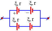 Bốn nguồn điện giống nhau, có cùng suất điện động và điện trở trong r, được mắc thành bộ nguồn theo sơ đồ như hình vẽ. Suất điện động và điện trở trong của bộ nguồn này tương ứng là