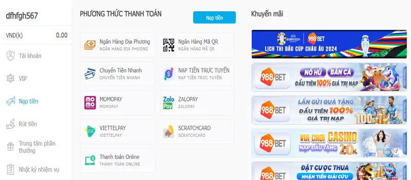 Hệ thống đã cải thiện đáng kể trong việc xử lý giao dịch tài chính. Website 988Bet đã thêm vào nhiều phương thức thanh toán tiên tiến hơn và các giao dịch chỉ mất từ 5 đến 10 phút để hoàn thành, giúp người chơi không phải chờ đợi lâu.