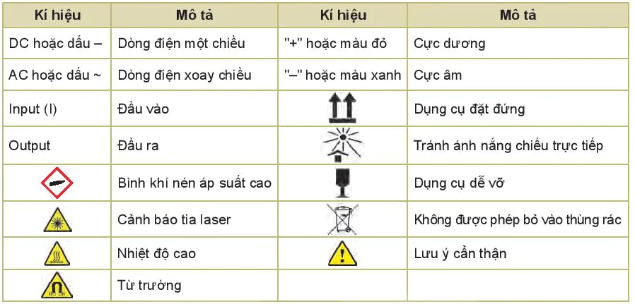 - Một số kí hiệu ghi trên các thiết bị thí nghiệm: