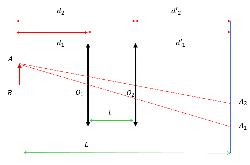d1+d1'=d2+d'2=L và d1.d1'd1+d1'=d2.d2'd2+d2'=f, d2-d1=l