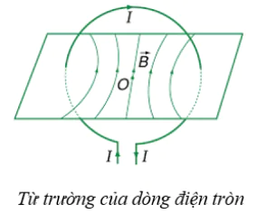 Phát biểu: Các đường sức từ của dòng điện tròn là những đường cong có chiều đi vào mặt Nam, đi ra mặt Bắc của dòng điện tròn ấy. Trong số dó, có đường sức từ đi qua tâm O là đường thẳng vô hạn ở hai đầu. Cảm ứng từ tại tâm O có phương vuông góc với mặt phẳng chứa dòng điện và có chiều đi vào mặt Nam, đi ra mặt Bắc của dòng điện tròn đó.