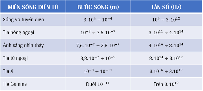 Vật lý 12.Bảng thang sóng điện từ. Hướng dẫn chi tiết.