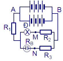 Vật lý 11. Công thức hiệu điện thế giữa hai điểm trong mạch điện. Mạch mắc nối tiếp. Mạch có vôn kế, ampe kế. Hướng dẫn chi tiết.