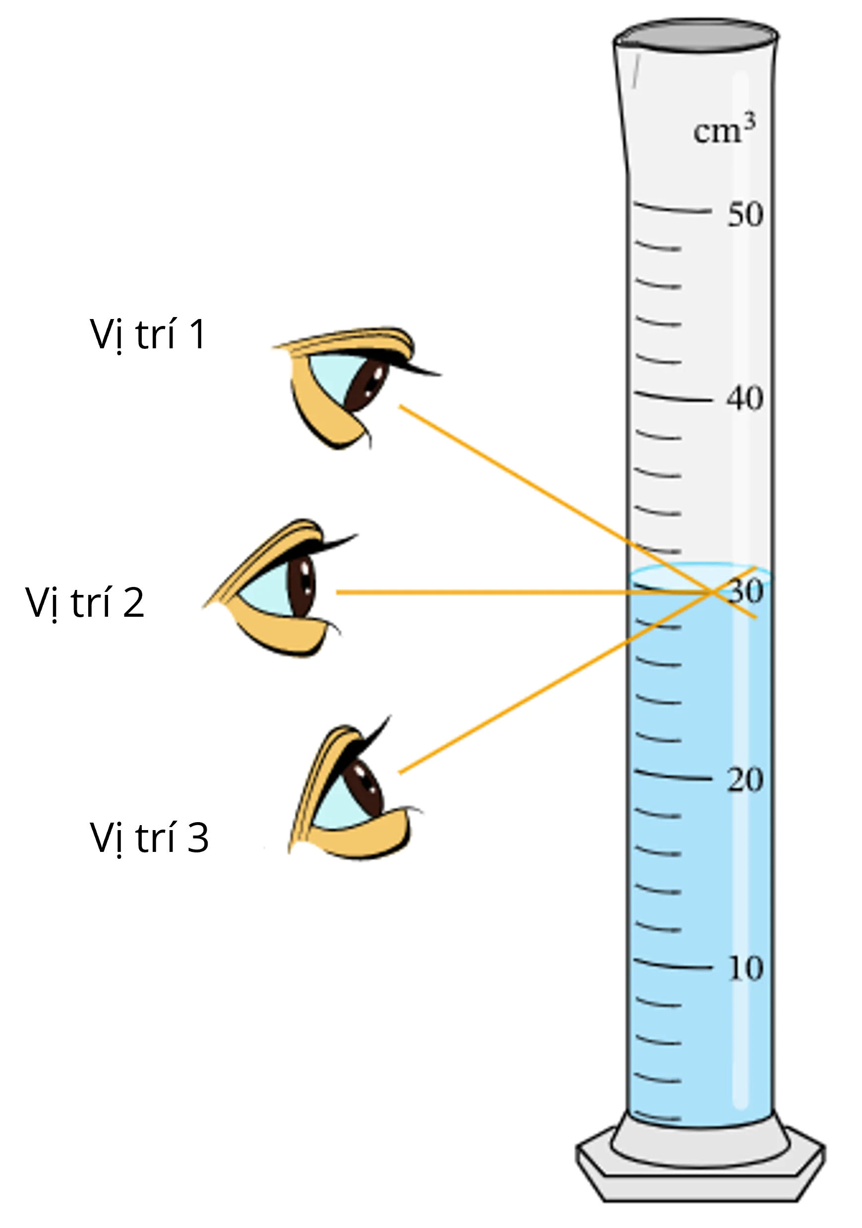 Cách đặt mắt nào sau đây là đúng khi đọc thể tích của nước trong bình chia độ?