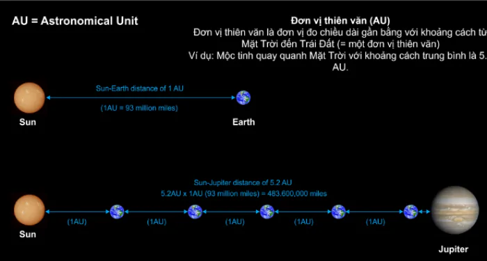 - Đơn vị thiên văn (AU): 1 AU = 150 triệu km