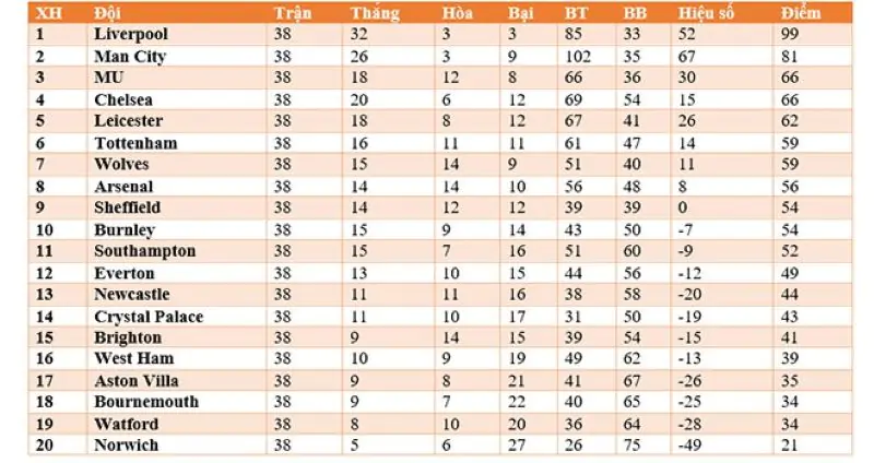 Cập nhật đầy đủ KQBD và BXH nhanh chóng