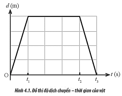 Cho đồ thị dịch chuyển - thời gian của một vật như hình 4.1. Trong những khoảng thời gian nào vật chuyển động thẳng đều?