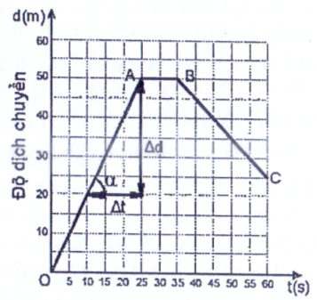 e) Một học sinh đã tính vận tốc trung bình bằng cách vẽ đồ thị quãng đường đi được theo thời gian như thể hiện ở hình 1.4. Dựa vào đồ thị này, học sinh ấy tính vận tốc trung bình như sau: