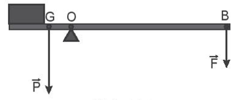 Một thanh chắn đường dài 8 m, có trọng lượng 220 N và có trọng tâm cách đầu bên trái 1,5 m (Hình vẽ). Thanh có thể quay quanh một trục nằm ngang ở cách đầu bên trái 1,8 m. Để giữ thanh cân bằng thì phải tác dụng vào đầu bên phải một lực bằng bao nhiêu?
