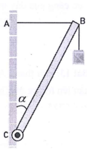 , có thể quay xung quanh bản lề tại B gắn vào bức tường thẳng đứng (như hình vẽ). Thanh AB được giữ cân bằng nằm ngang nhờ sợi dây AC hợp với tường một góc