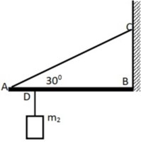 , chiều dài ? = 3 m gắn vào tường bởi bản lề A. Đầu B của thanh treo vật nặng