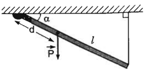 Một thanh dài ? = 1 m, khối lượng m =1,5 kg. Một đầu thanh được gắn vào trần nhà nhờ một bản lề, đầu kia được giữ bằng một dây treo thẳng đứng. Trọng tâm của thanh cách bản lề một đoạn d = 0,4 m. Lấy