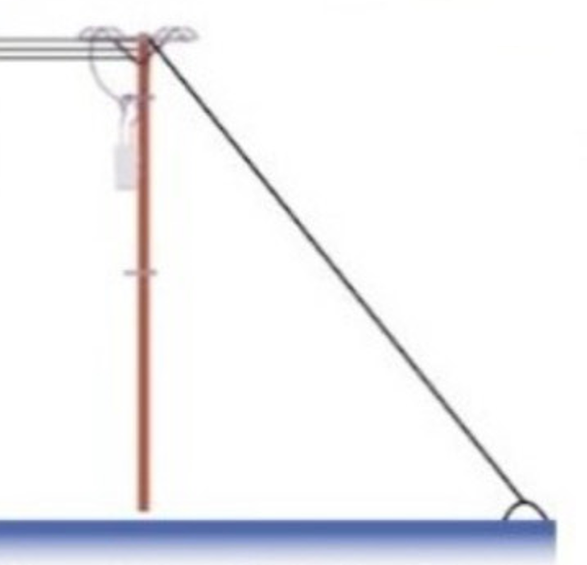 Một cột truyền tải điện có các dây cáp dẫn điện nằm ngang ở đầu cột và được giữ cân bằng thẳng đứng nhờ dây thép gắn chặt xuống đất như hình vẽ. Biết dây cáp thép tạo góc