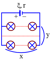 Cho một nguồn điện có suất điện động 24 V và điện trở trong 6 Ω. Có một số bóng đèn loại 6V − 3W được mắc thành y dãy song song trên mỗi dãy có x bóng đèn, rồi mắc vào nguồn điện đã cho thì tất cả các đèn sáng bình thường. Giá trị lớn nhất của xy là