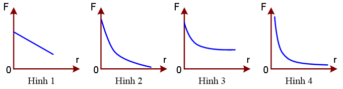 Đồ thị nào trong hình vẽ có thể biểu diễn sự phụ thuộc của lực tương tác giữa hai điện tích điểm vào khoảng cách giữa chúng?