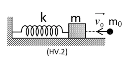 Dạng bài: Cho hệ dao động như hình vẽ 2. Lò xo có k = 25N/m. Vật có m = 500g có thể trượt không ma sát trên mặt phẳng ngang. Khi hệ đang ở trạng thái cân bằng, dùng một vật nhỏ có khối lượng mo= 100g bay theo phương ngang với vận tốc có độ lớn vo= 1,2m/s đến đập v
