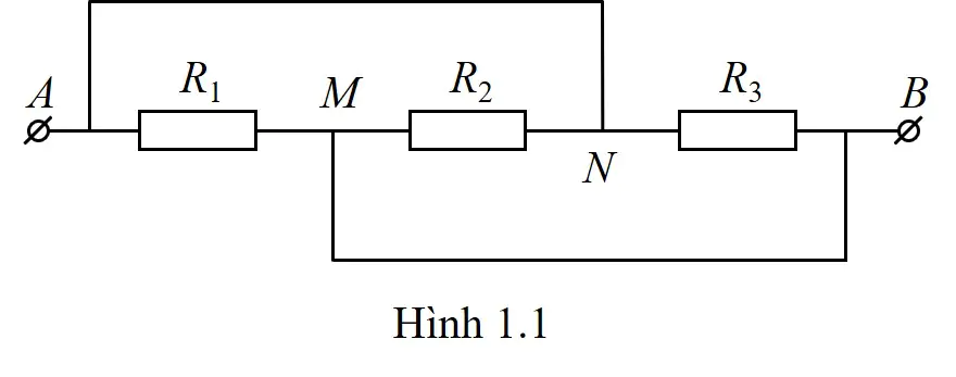 Cho mạch điện như hình 1.1, biết = = = R = 6 Ω. Tính điện trở tương đương đoạn mạch AB.