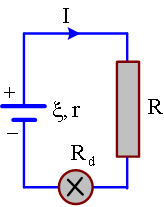Dạng bài: Vật lý 11. Cho mạch điện như hình vẽ. Trong đó, Rđ = 11Ω, R = 0,9 Ω. Biết đèn dây tóc sáng bình thường. Hiệu điện thế định mức và công suất định mức của bóng đèn lần lượt là. Hướng dẫn chi tiết.