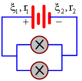 Mạch điện có cùng E = 1,5 V và r = 1 ôm. Hai bóng đèn giống nhau cùng số ghi trên đèn 3 V - 0,75 W. Tính hiệu suất của bộ nguồn và hiệu điện thế giữa hai cực của mỗi pin.
