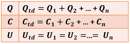 - Cách ghép song song làm tăng điện dung của tụ điện phẳng, điện dung tương đương luôn lớn hơn từng điện dung thành phần.