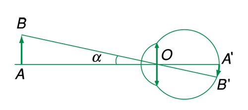 Khái niệm: Góc trông vật là góc tạo bởi hai tia sáng xuất phát từ hai điểm A và B tới mắt. Phụ thuộc vào kích thước vật và khoảng cách từ vật đến mắt.