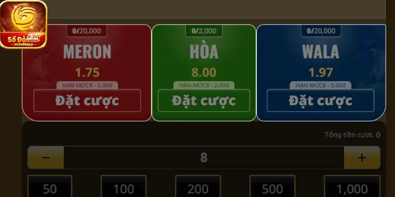 Khi chơi Đá Gà SODO66 bạn đặt cửa Meron tức là đặt theo chiến kê của nhà cái chọn. Nếu anh em nhận định thấy có khả năng chiến thắng cao sẽ vào tiền cửa này. Theo những người chơi lâu năm chia sẻ anh em chưa có nhiều kinh nghiệm nên chọn Meron.