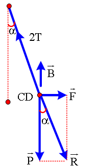 - Khi cân bằng thì hợp lực ở vị trí như hình vẽ: