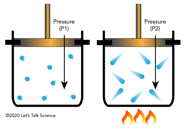 Khi nhiệt độ tăng thì phân tử khí chuyển động nhanh hơn. Vậy áp suất tỉ lệ thuận với nhiệt độ.