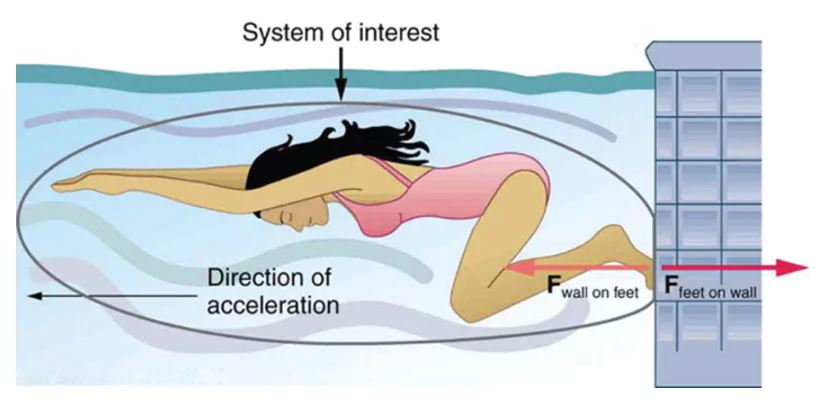 Trong hình minh họa chúng ta thấy lực do chân vận động viên tác động vào tường trực đối với lực do tường tác động vào chân vận động viên.