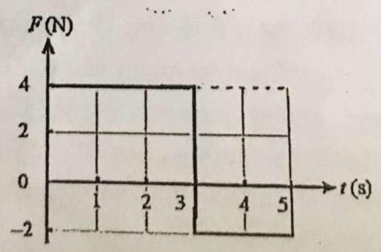 Đồ thị trong Hình 4.5 mô tả sự phụ thuộc của độ lớn lực F tác dụng lên một chất điểm theo thời gian. Biết chất điểm có khối lượng 2 kg và ban đầu ở trạng thái nghỉ. Xác định tốc độ của chất điểm tại các thời điểm.