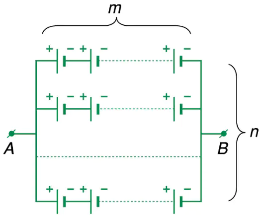Với là số dãy ghép song song và là số nguồn điện giống nhau ghép nối tiếp trên mỗi dãy.