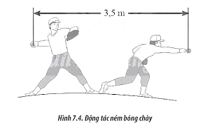 Giải thích tại sao trong trò chơi bóng chày, cầu thủ ném bóng thường sử dụng tư thế như Hình 7.4. Vị trí mà cầu thủ bắt đầu tác dụng lực đến khi quả bóng rời khỏi tay cách nhau một khoảng 3,5 m. Có thể xem gần đúng chuyển động của bóng trong tay cầu thủ trong quá trình giao bóng là chuyển động nhanh dần.