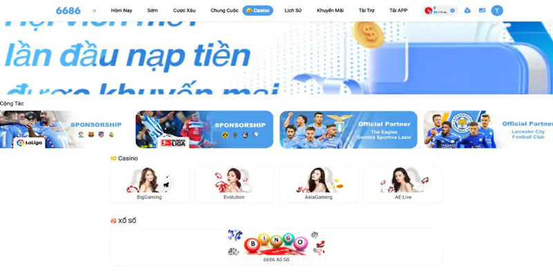 Nhà cái 6686 là địa điểm hàng đầu cho những người yêu thích trải nghiệm cá cược. Sự liên kết với hơn 30 ngân hàng nội địa tạo điều kiện thuận lợi cho khách hàng lựa chọn địa điểm uy tín và phù hợp với nhu cầu cá nhân.