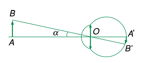 Khái niệm: Góc trông vật là góc tạo bởi hai tia sáng xuất phát từ hai điểm A và B tới mắt. Phụ thuộc vào kích thước vật và khoảng cách từ vật đến mắt.