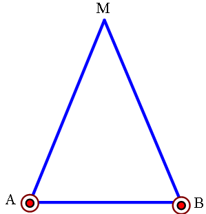 Hai dây dẫn thẳng, rất dài, đặt song song, cách nhau 18 cm trong không khí, có hai dòng điện cùng chiều, cùng cường độ = 6 A chạy qua, vuông góc và cắt mặt phẳng hình vẽ (mặt phẳng P) lần lượt tại A và B (dòng đi ra tại A, dòng đi ra tại B). Gọi M là điểm thuộc mặt phẳng P sao cho MA = MB = 15 cm (xem hình vẽ). Gọi φ là góc hợp bởi véc tơ cảm ứng từ tổng hợp tại M () và véc tơ . Chọn phương án đúng.