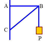 Cho một vật có khối lượng được treo vào tường bởi dây BC và thanh AB. Thanh AB gắn vào tường bằng bản lề A, ta có và .