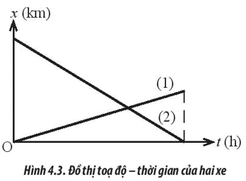 Hình 4.3 mô tả đồ thị tọa độ - thời gian của hai chiếc xe trong cùng một khoảng thời gian.