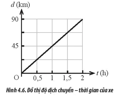 Hình 4.6 mô tả đồ thị độ dịch chuyển - thời gian của một chiếc xe ô tô chạy trên một đường thẳng. Tính vận tốc trung bình của xe.