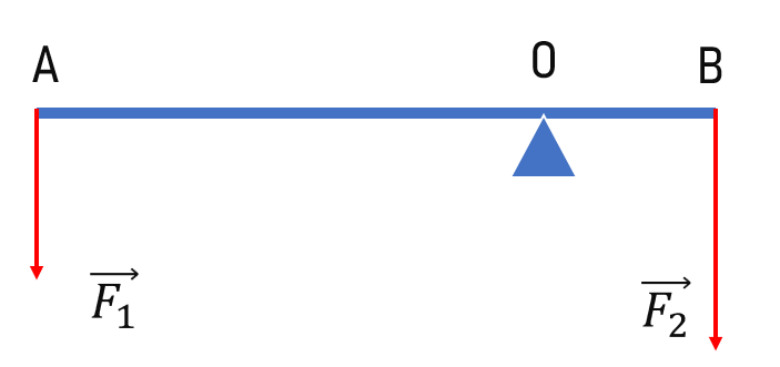 , hai lực này có phương phẳng đứng hướng xuống. Đặt thanh lên một giá đỡ tại O (với OA > OB) thì thanh cân bằng nằm ngang (như hình vẽ). Lấy